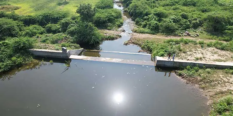The anicut benefits eight open wells and six bore wells situated near the structure. The structure ensures the sustainability of two drinking water sources; one that is currently supplying piped water to 150 households through an existing Panchayat scheme, and the second, an under-construction source that is part of the Jal Jeevan Mission (JJM) scheme and will eventually provide piped water to all the households in the community.