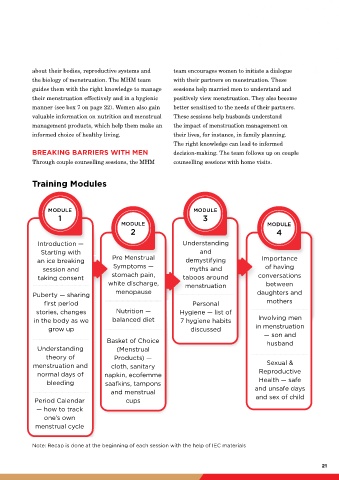 valuable information on nutrition and menstrual These sessions help husbands understand
