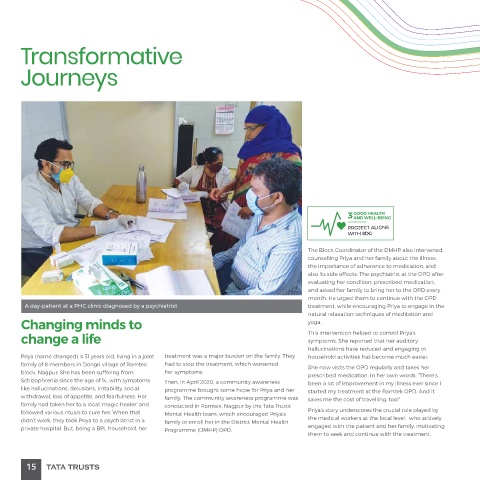A day-patient at a PHC clinic diagnosed by a psychiatrist treatment, while encouraging Priya to engage in the