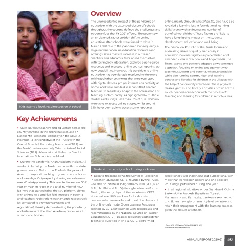 and Navodaya Vidyalayas, by sharing micro lessons in Teacher Education (CETE) founded by the Trusts, more than 10 research papers and one book by