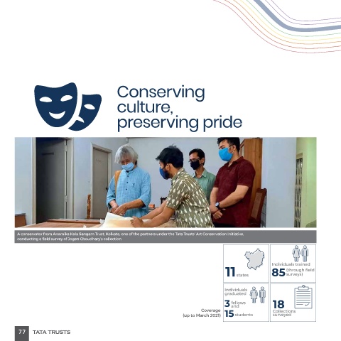 A conservator from Anamika Kala Sangam Trust, Kolkata, one of the partners under the Tata Trusts’ Art Conservation Initiative,