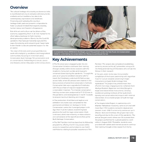 The vision of the Arts and Culture portfolio is to A conservator from HIMSHACO, Ranibagh, one of the partners under the Tata Trusts’ Art Conservation