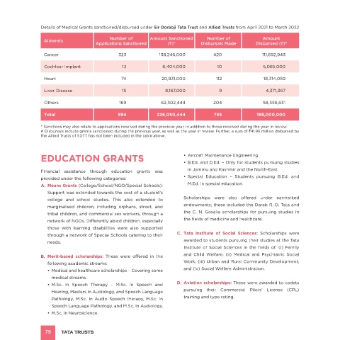 Details of Medical Grants sanctioned/disbursed under Sir Dorabji Tata Trust and Allied Trusts from April 2021 to March 2022