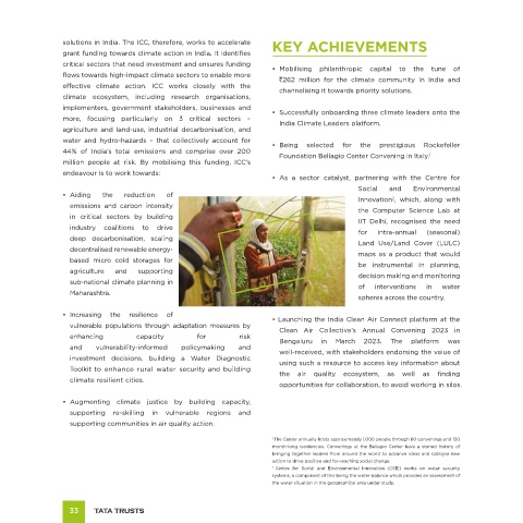 solutions in India. The ICC, therefore, works to accelerate KEY ACHIEVEMENTS
