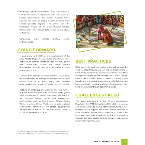 stage, culminating in COP28 . Throughout the year, ICC CHALLENGES FACED