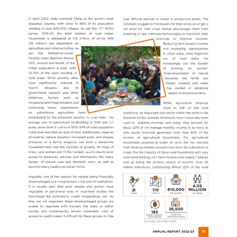 In April 2023, India overtook China as the world’s most over di cult periods or invest in productive assets. The Going forward, elements like bio-protection, conservation mobilisation, technical training/skilling and imparting